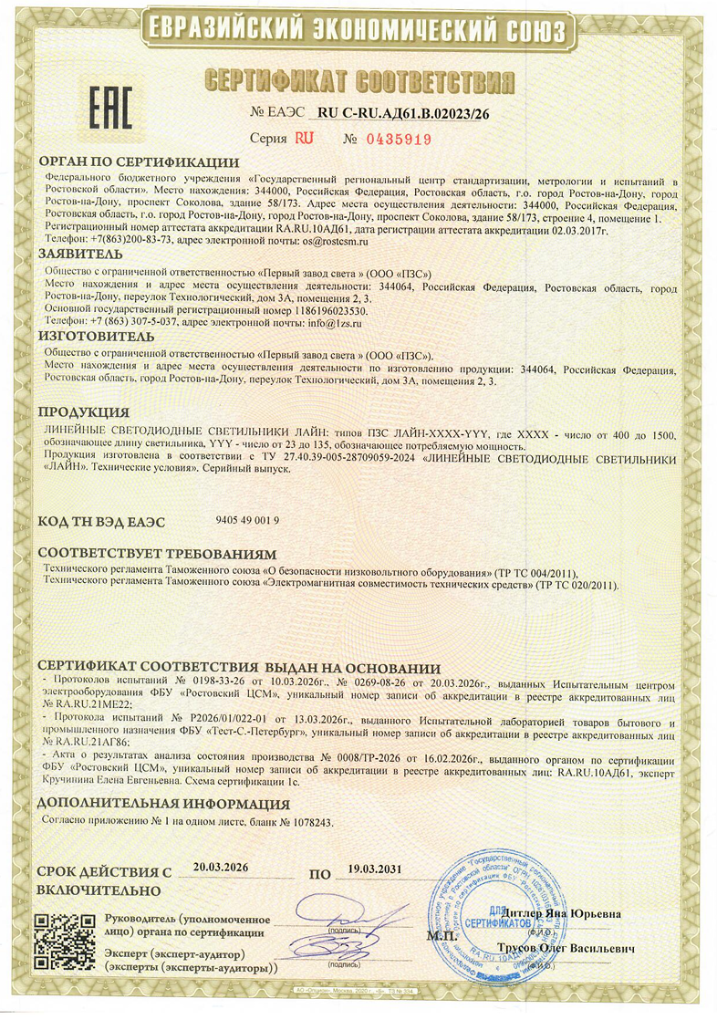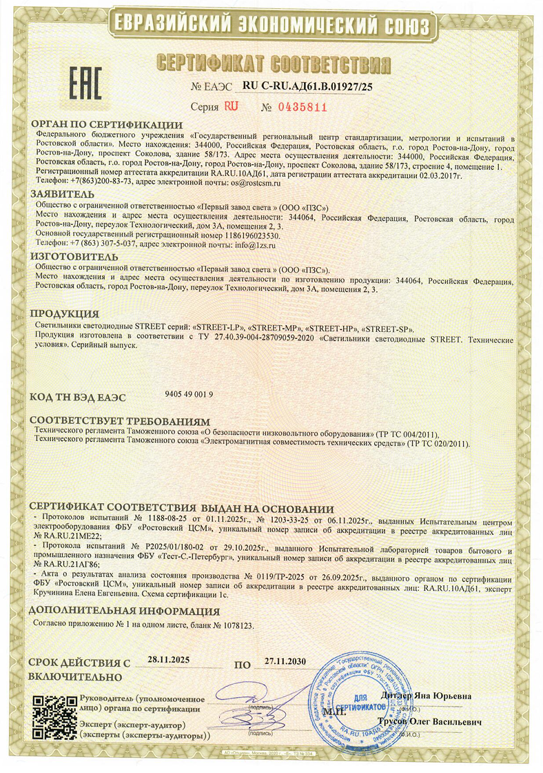 Срок эксплуатации LED-светильников составляет более 15 лет, что превышает срок службы другого светооборудования в 2 раза.